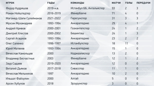 До него в Турции выступали 18 российских игроков. Вспоминаем самых известных.