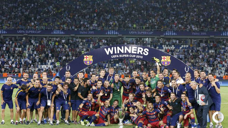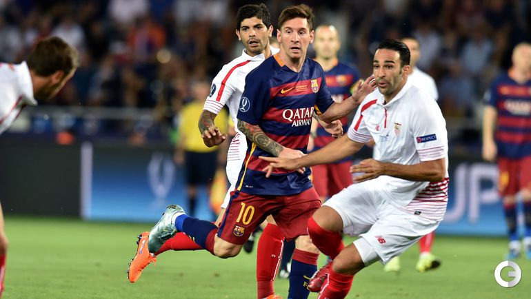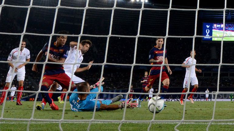 Суперкубок УЕФА. "Барселона" – "Севилья" – 5:4 д.в. (3:1, 1:3, 1:0). Голы: Банега, 3 (0:1). Месси, 7 (1:1). Месси, 16 (2:1). Рафинья, 44 (3:1). Суарес, 52 (4:1). Рейес, 57 (4:2). Гамейро, 72 – с пенальти (4:3). Коноплянка, 81 (4:4). Педро, 115 (5:4). Фото AFP, REUTERS