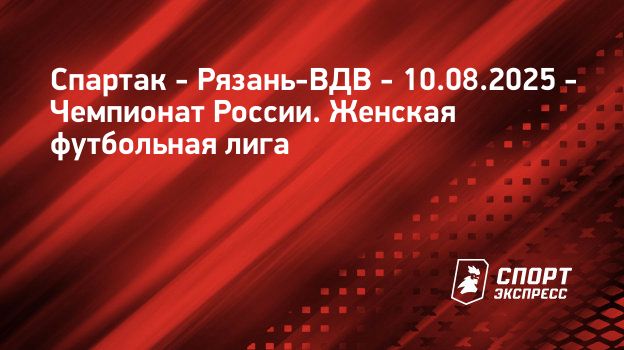"СЭ" рад приветствовать всех любителей футбола! Здесь вас ждет онлайн-трансляция матча Спартак (Москва) – Рязань-ВДВ (Рязань). Чемпионат России. Женская футбольная лига, 17-й тур Матч пройдет 10 августа 2025 года на стадионе Академия "Спартак" им. Черенкова (Москва, Россия). Начало - в 13:00 по московскому времени.
