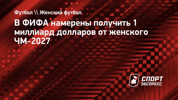 ФИФА оценивает доход от проведения ЧМ-2027 среди женщин в размере 1 миллиарда долларов. Об этом заявил президент федерации Джанни Инфантино.