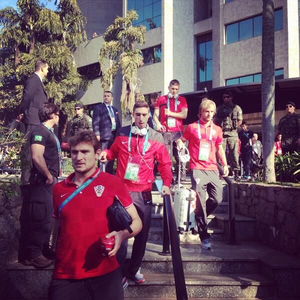 Сборная Хорватии отправилась на матч открытия чемпионата мира-2014 против Бразилии. Первый поединок мирового первенства начнется в полночь по московскому времени. "СЭ" проведет текстовую трансляцию матча Бразилия - Хорватия.