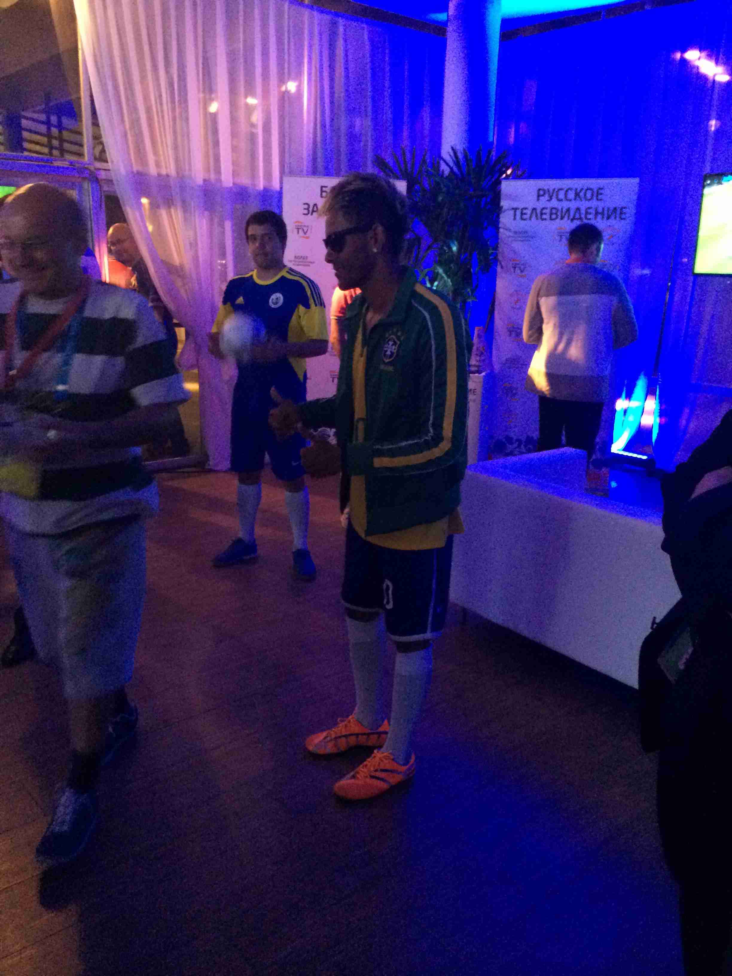 Вчера в Русском доме в Рио-де-Жанейро выступал артист, копирующий Неймара, передает спецкор "СЭ" Дмитрий СИМОНОВ. Casa da Russia расположен в Музее современного искусства. Вчерашнее мероприятие посвящалось Дням "Динамо" в Бразилии. На нем присутствовали в числе прочих президент РФС Николай Толстых и экс-капитан сборной России, заместитель исполнительного директора "Динамо" Алексей Смертин.