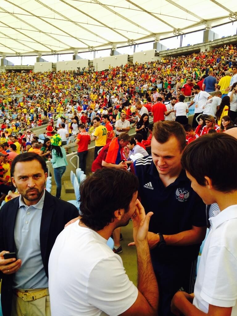 Директор официального фан-клуба "Спартака" Олег Семенов во время матча Бельгия – Россия (1:0) встретил на трибуне стадиона "Маракана" нападающего "Реала" Дениса Черышева и экс-капитана мадридского клуба Рауля. Оба игрока беседовали в перерыве встречи.