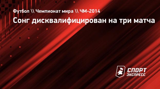 Дисциплинарный комитет ФИФА рассмотрел эпизод с удалением полузащитника сборной Камеруна в матче чемпионата мира-2014 со сборной Хорватии (0:4), информирует официальный твиттер организации. Футболист получил красную карточку за удар нападающего хорватов Марио Манджукича. ФИФА вынесла решение о дисквалификации Сонга на три матча. Таким образом, он пропустит сегодняшнюю игру чемпионата мира со сборной Бразилии, а также две встречи отборочного турнира чемпионата мира-2018.