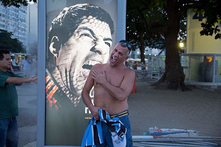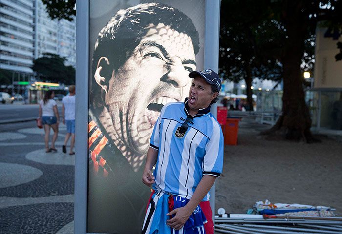 Рекламный щит с изображением нападающего Луиса Суареса на пляже Копакабана в Рио-де-Жанейро приобрел особую популярность у болельщиков после инцидента в матче ЧМ-2014 Италия – Уругвай, информирует The Guardian. Любители футбола со всего мира фотографируются на фоне открывшего рот Суареса, изображая Джорджо Кьеллини.