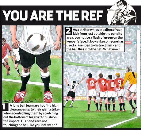 Авторы популярной английской книги "Вы – судья" в очередном издании в 2011 году среди прочих описали эпизод, когда арбитр принимает решение о взятии ворот после того как в глаза вратарю кто-то из зрителей посветил лазерной указкой. В последние годы такие случаи встречаются достаточно часто. Читателям в комиксах обрисовывают спорные, нерядовые ситуации на поле и перед ответом предлагают самим все решить за рефери.