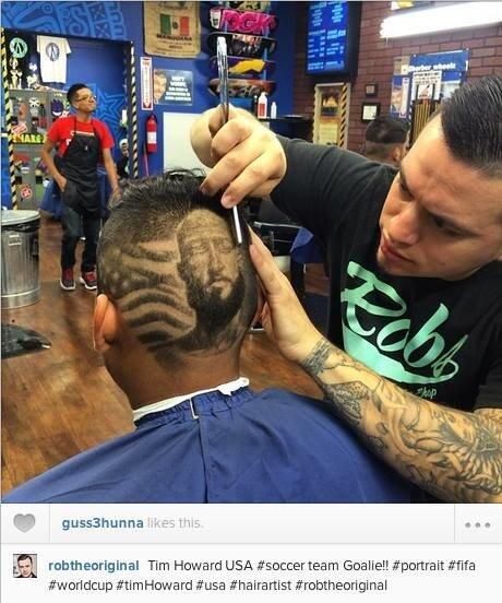 Любовь к сборной США одного из болельщиков команды нашла своеобразное выражение. Молодой человек попросил парикмахера выстричь ему на затылке изображение национального флага и портрет голкипера американцев Тима Хоуарда. Напомним, подопечные Юргена Клинсманна преодолели групповой этап ЧМ-2014 и в 1/8 финала встретятся с Бельгией.