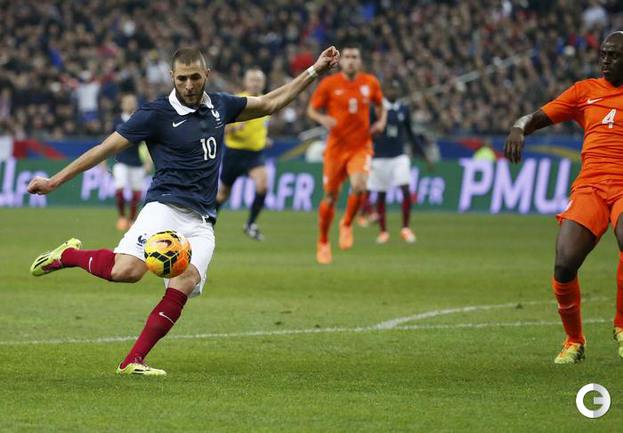 Сборная Франции в контрольной встрече переиграла национальную команду Голландии. Два гола в составе трехцветных записали на свой счет Карим Бензема и Блез Матюиди.Фото AFP