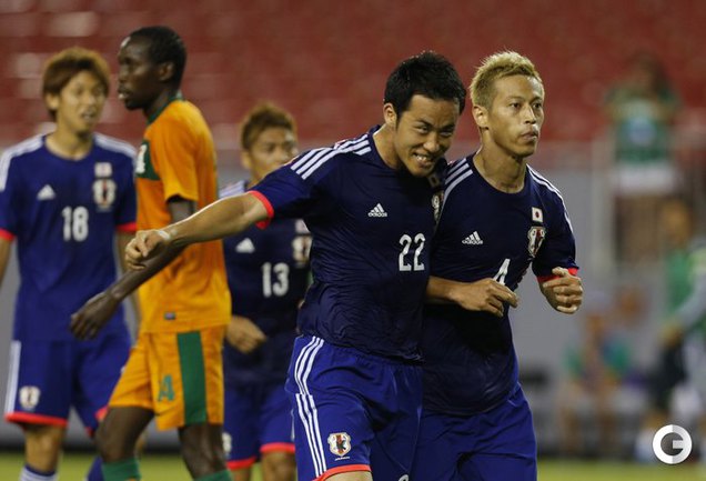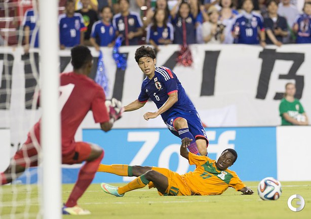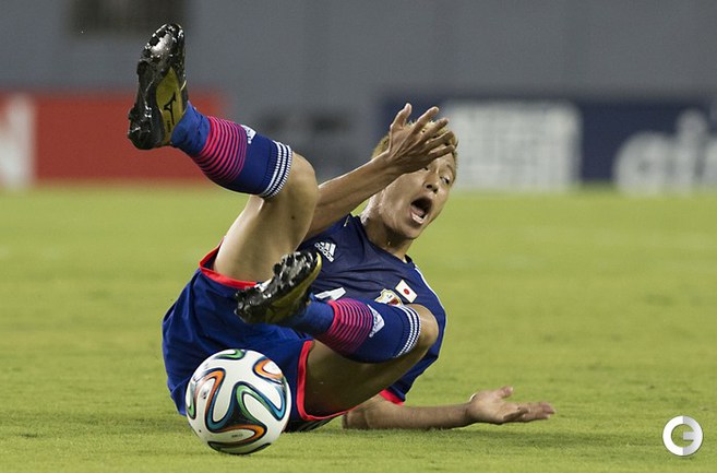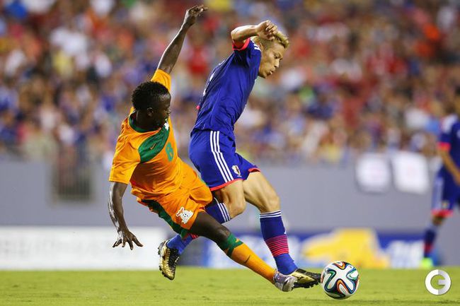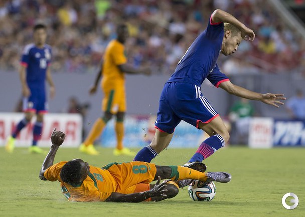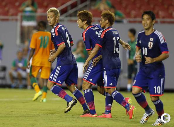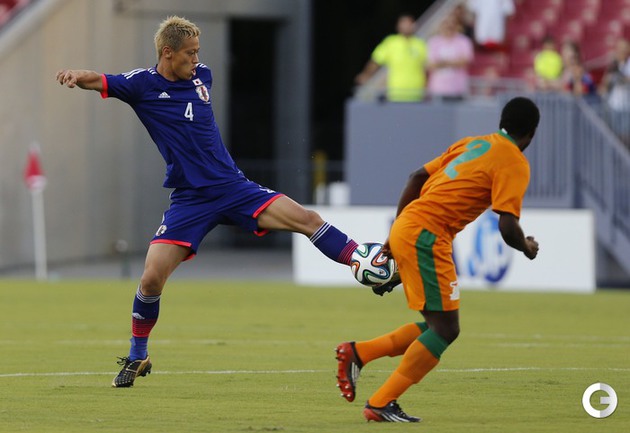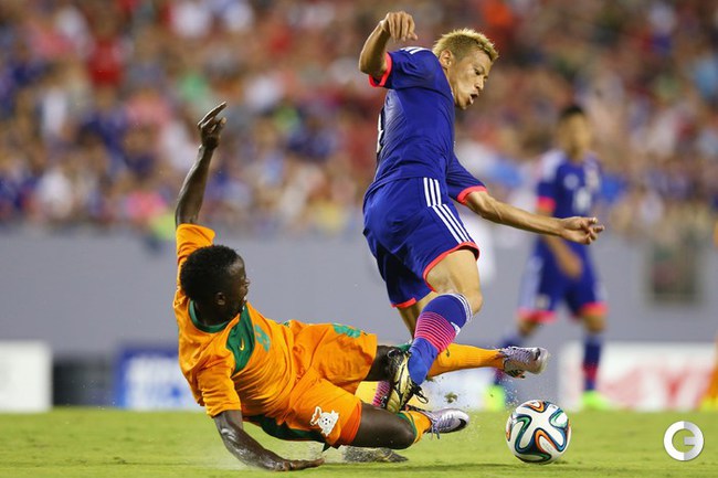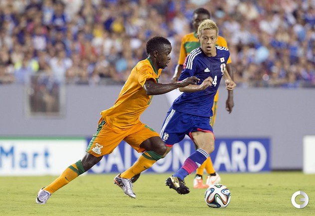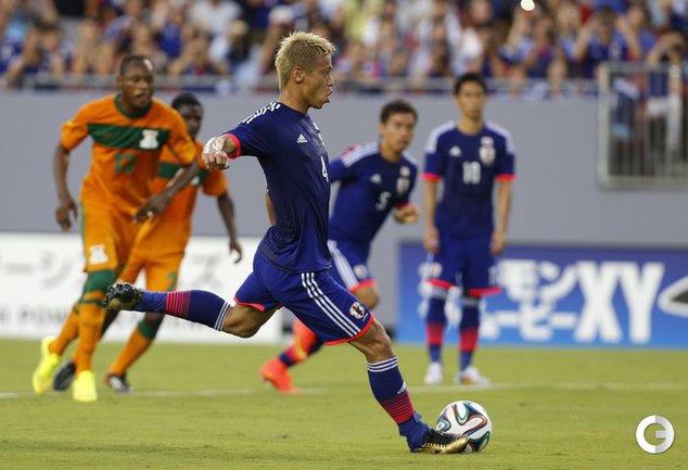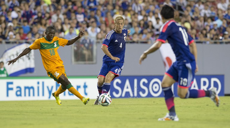 07,06.2014. Тампа-Бэй (США). Япония – Замбия – 4:3. Сборная Японии в товарищеском матче обыграла сборную Замбии (4:3). Экс-полузащитник ЦСКА Кейсуке Хонда, сейчас выступающий за "Милан", отметился дублем. Фото AFP