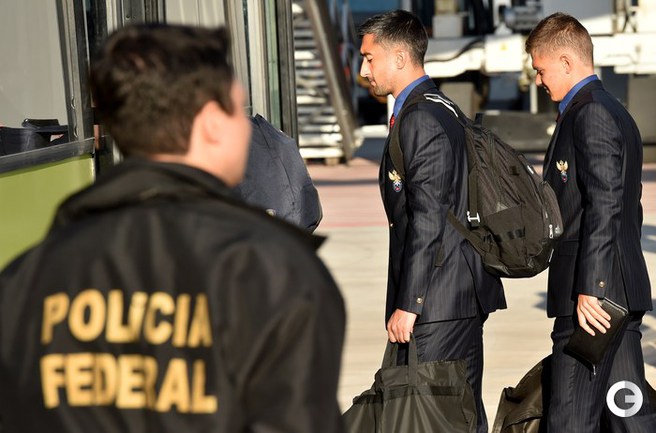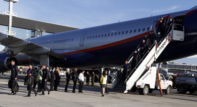 Сан-Паулу. Самолет с игроками, тренерским штабом и персоналом сборной России приземлился в аэропорту Сан-Паулу. Фото Александр ФЕДОРОВ, "СЭ" // AFP, REUTERS