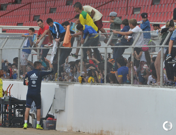 Специальный фотокорреспондент "СЭ" Александр Федоров побывал на открытой тренировке сборной России в Иту, на которую пускали всех желающих по бесплатным билетам. Чтобы получить его, болельщикам достаточно было предъявить паспорт
