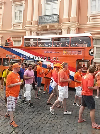 Болельщики сборной Голландии готовятся к матчу чемпионата мира против Испании. Фото - Александр Просветов, "СЭ"
