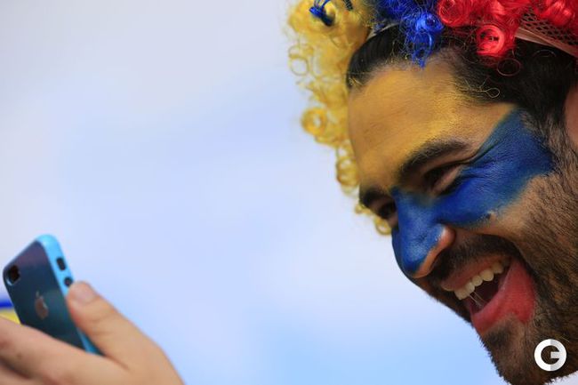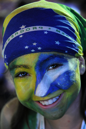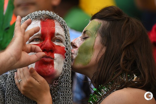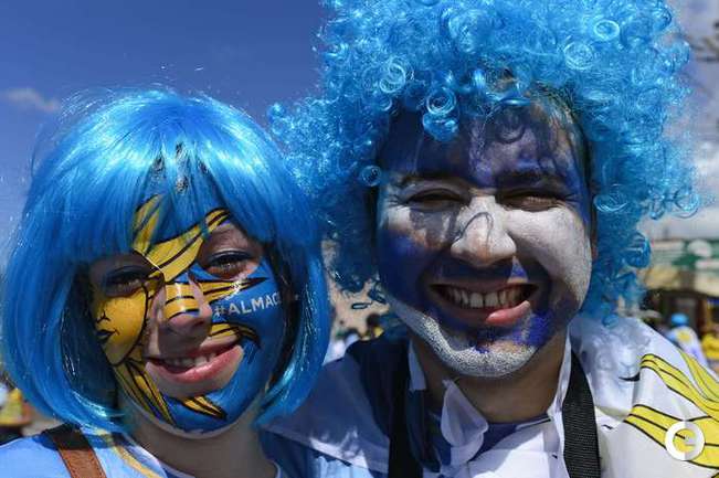 Чемпионат мира дает возможность проявить себя не только игрокам, но и болельщикам разных стран. Уже в первых матчах турнира на трибунах можно наблюдать красочный карнавал. Любители футбола стараются посещать матчи турнира, разукрасив себя красками всех цветов и облачившись в самые необычные наряды. Фото AFP