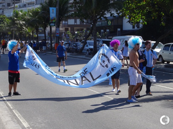 На престижном пляже Ипанема в южной части Рио-де-Жанейро болельщики Аргентины и Боснии готовятся к поединку своих сборных на чемпионате мира по футболу. Фото - Александр Бобров, "СЭ"