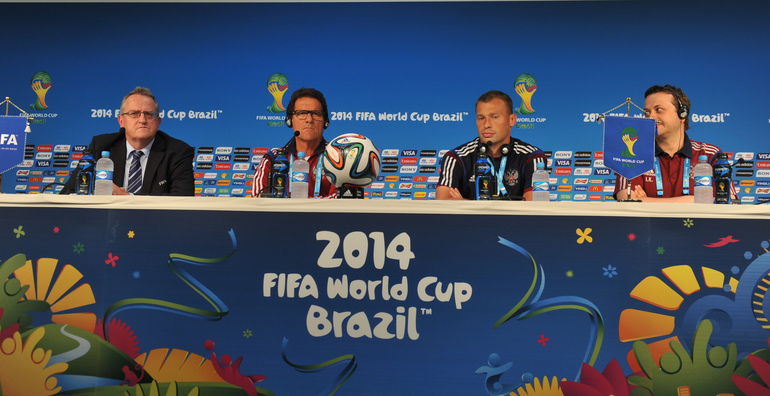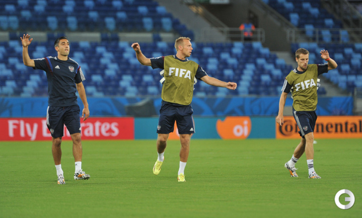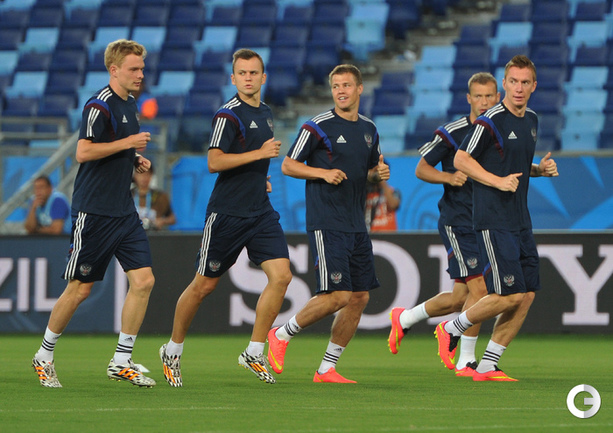 16 июня 2014 года. Куяба. Сборная России провела предматчевую тренировку на стадионе "Пантанал" перед первым матчем на ЧМ-2014 - против Кореи. Фото - Александр ФЕДОРОВ, "СЭ"