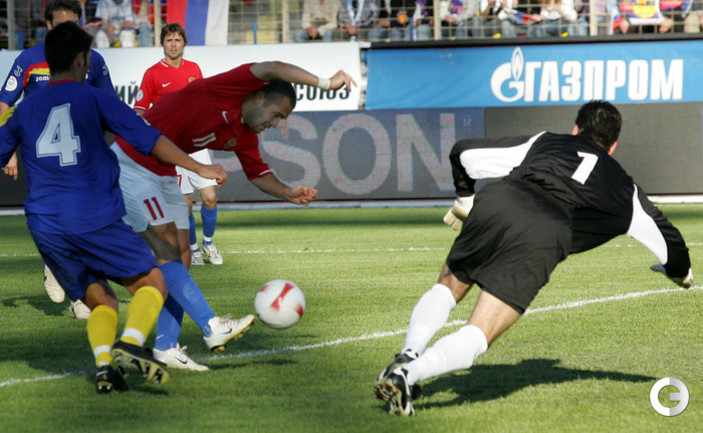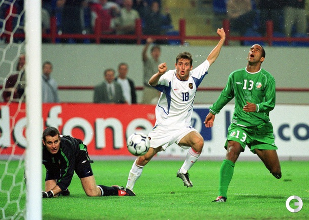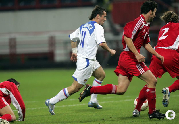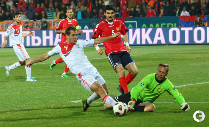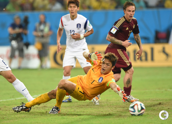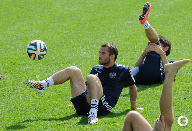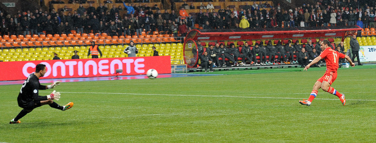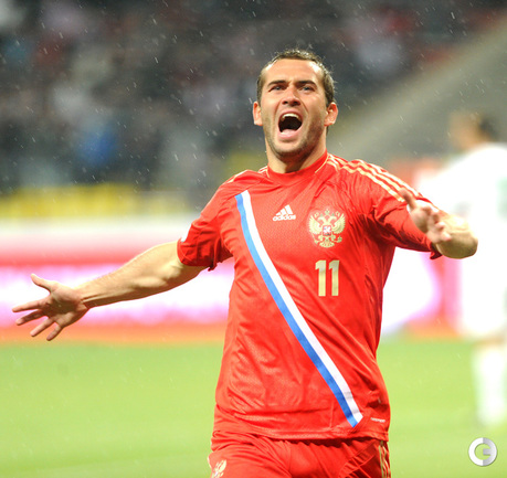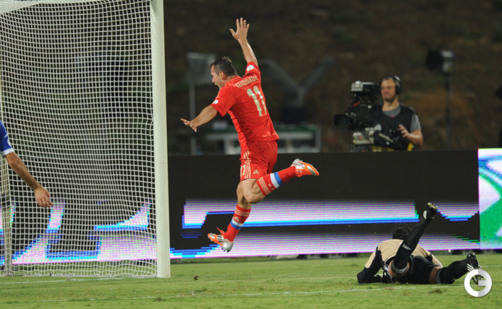 Забив на 74-й минуте ответный гол в ворота Кореи в матче чемпионата мира-2014 нападающий сборной России, Александр Кержаков догнал Владимира Бесчастных по количеству голов за национальную команду – теперь у них по 26 мячей. Александр Кержаков забил первый гол сборной России на турнире в Бразилии. Фото "СЭ"