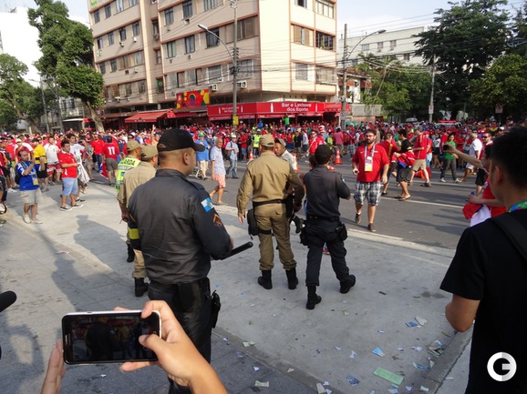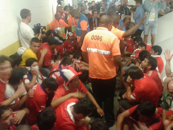 Рио-де-Жанейро. Чилийские болельщики устроили беспорядки перед матчем чемпионата мира против сборной Испании. Фото - Александр Бобров и Дмитрий Зеленов, "СЭ"