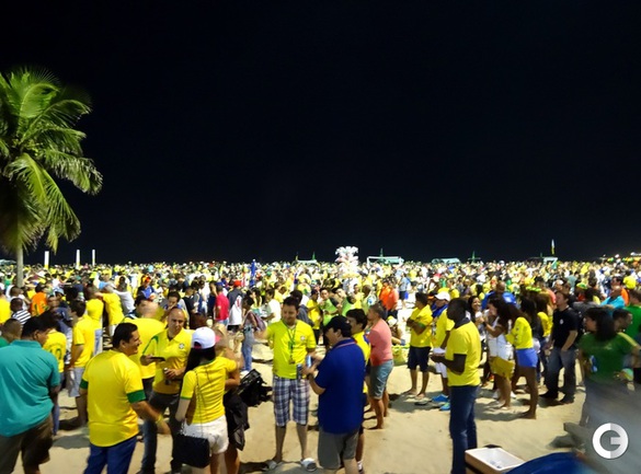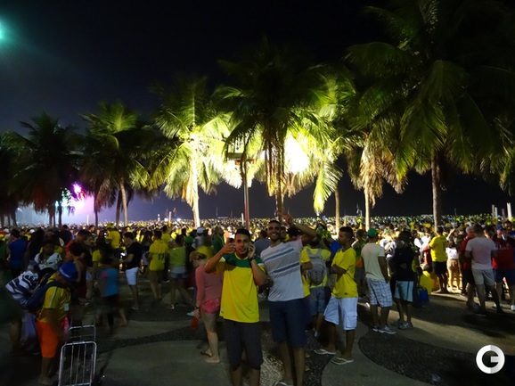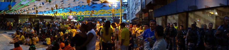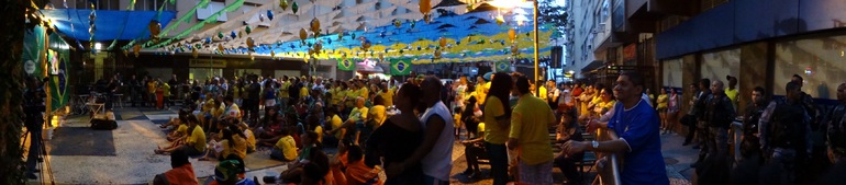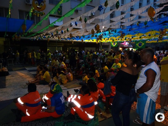 Рио-де-Жанейро. На улицах Рио-де-Жанейро болельщики сборной Бразилии следили за матчем своей национальной команды против Камеруна. Фото Александр БОБРОВ, "СЭ"