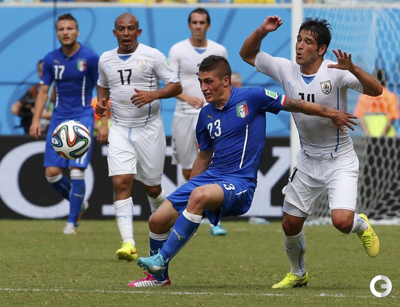Футбол. Чемпионат мира. Группа D. Италия – Уругвай – 0:1 (0:0). Гол: Годин, 81. Эта победа позволила подопечным Оскара Табареса выйти в плей-офф чемпионата мира. Фото REUTERS