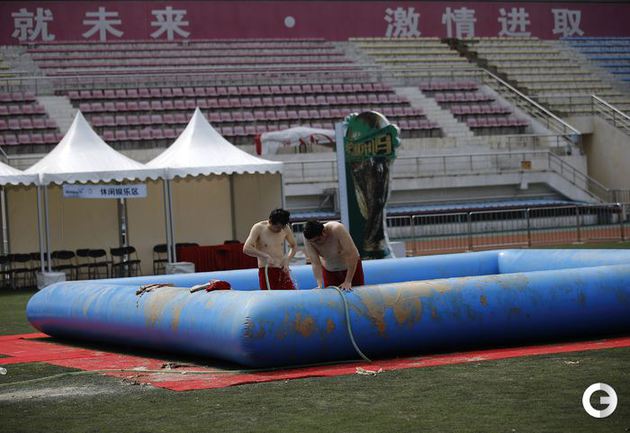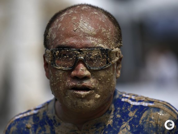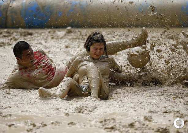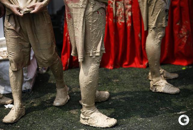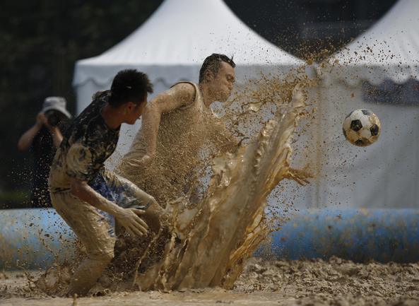 Пекин. В дни проведения чемпионата мира по футболу в Бразилии на другом конце планеты прошли соревнования по болотному футболу. Китайская сборная не участвует в мировом первенстве, но интерес к матчам турнира огромный. В Пекине прошел свой турнир, в котором местные "болотные" футболисты разбились на 32 команды. Фото REUTERS