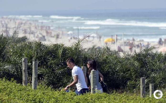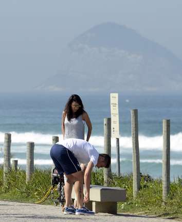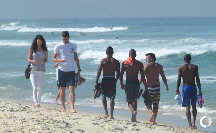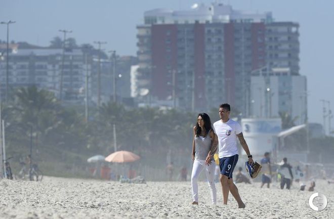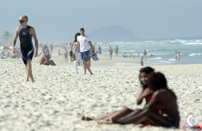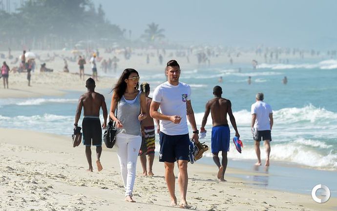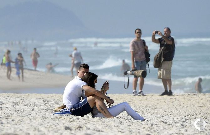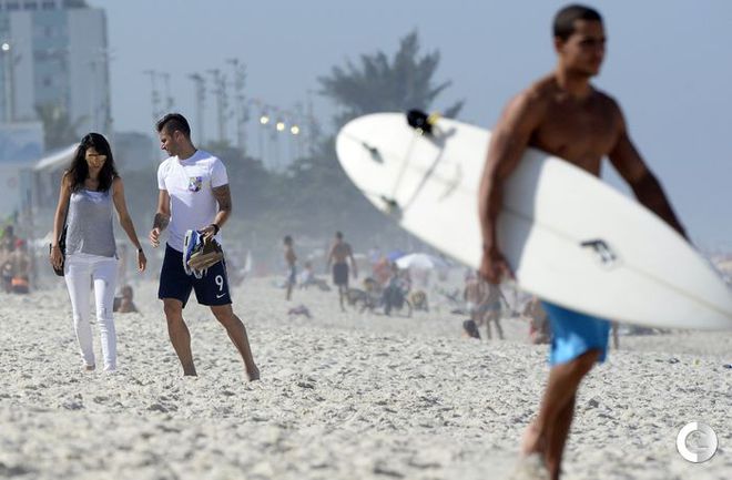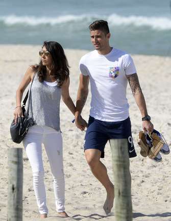 Игрок сборной Франции и лондонского "Арсенала" Оливье Жиру вместе с женой Дженифер прогулялся по пляжу Копакабана после выхода своей команды в 1/8 финала. Молодая пара не привлекла внимание отдыхающих и осталась бы незамеченной, если б не французские фотокорреспонденты, который сразу начали фотоохоту на футболиста. Фото AFP