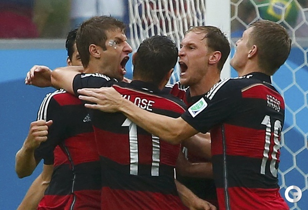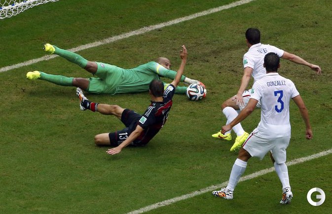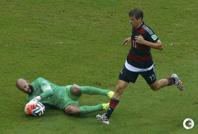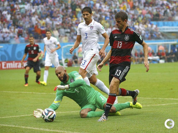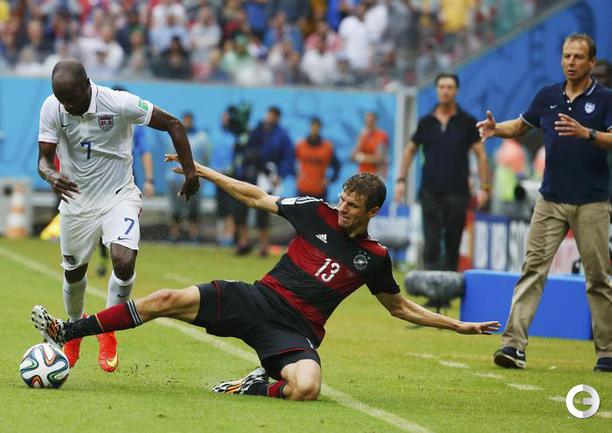 Чемпионат мира. Группа Е. США – Германия – 0:1 (0:0). Гол: Мюллер, 55. В матче чемпионата мира сборная Германии обыграла США – 1:0. Гол на 55-й минуте забил нападающий Томас Мюллер, для которого он стал четвертым на турнире в Бразилии. Отметим, что команда Йоахима Лева вышла в 1/8 финала с первого места с семью очками, а американцы, несмотря на поражение, остались вторыми в группе G, набрав 4 очка. Фото REUTERS