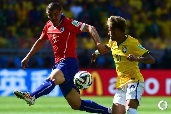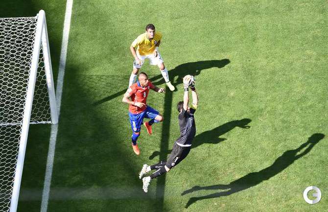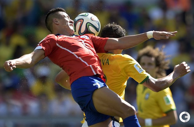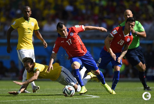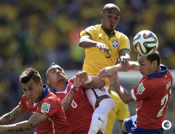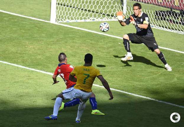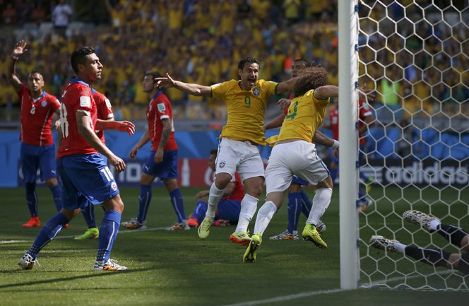 28 июня 2014 года. Сборная Бразилии одержала победу над Чили и стала первой участницей 1/4 финала ЧМ-2014. Фото AFP, REUTERS