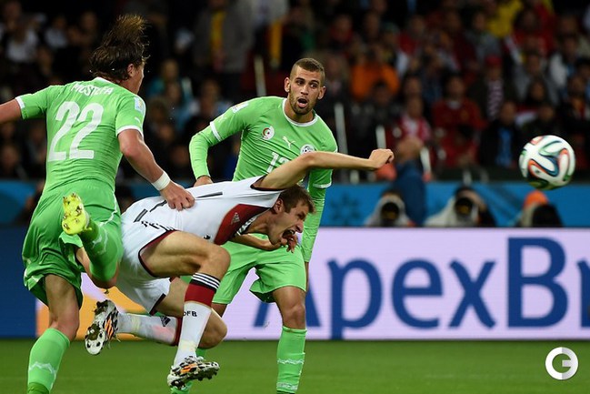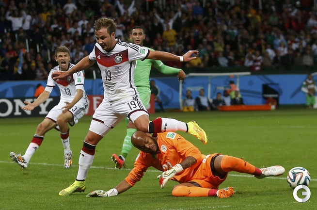 Чемпионат мира-2014. 1/8 финала. Германия – Алжир – 2:1 (0:0, 0:0, 2:1). Голы: Шюррле, 92 (1:0). Езил, 119 (2:0). Джабу, 121 (2:1). В четвертьфинале немцы сыграют против Франции в Рио-де-Жанейро 4 июля. Фото AFP, REUTERS