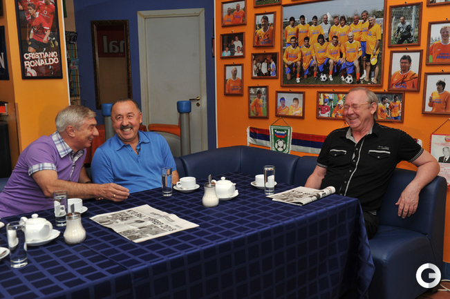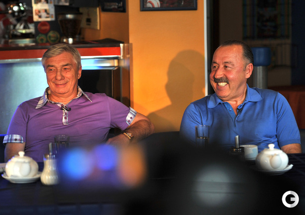 В московском спорт-баре "Допинг" известные российские тренеры Валерий Газзаев, Олаг Романцев и Георгий Ярцев в программе Александра Львова "Начистоту" обсудили выступление сборной России на ЧМ-2014, сделали свои прогнозы на то, кто станет чемпионом планеты. Об этом и многом другом смотрите в программе на портале "Спорт-экспресс" в ближайшее время. Фото - Федор Успенский, "СЭ"