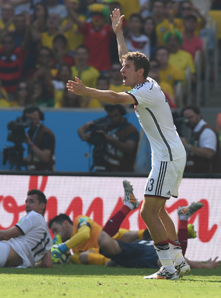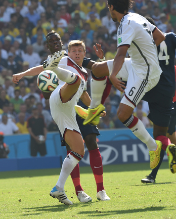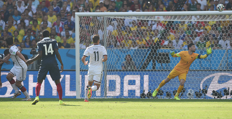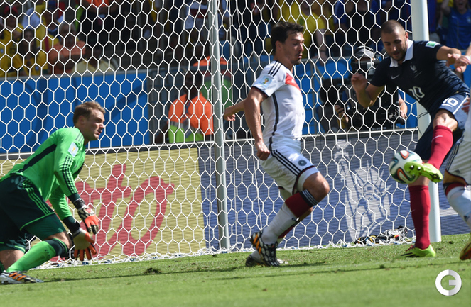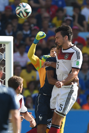В первом четвертьфинале ЧМ-2014 сборная Германии одолела Францию – 1:0. Единственный гол на 13-й минуте провел защитник Матс Хуммельс, замкнувший подачу при розыгрыше штрафного Тони Крооса. Бундестим выходит как минимум в полуфинал крупного турнира в пятый раз подряд – ЧМ-2006 (3-е место), 2010 (3-е место) и 2014, а также Euro-2008 (финал) и 2012 (полуфинал). В полуфинале подопечные Йоахима Лева сыграют с победителем второго сегодняшнего матча Бразилия – Колумбия. Фото Александр ФЕДОРОВ, "СЭ"
