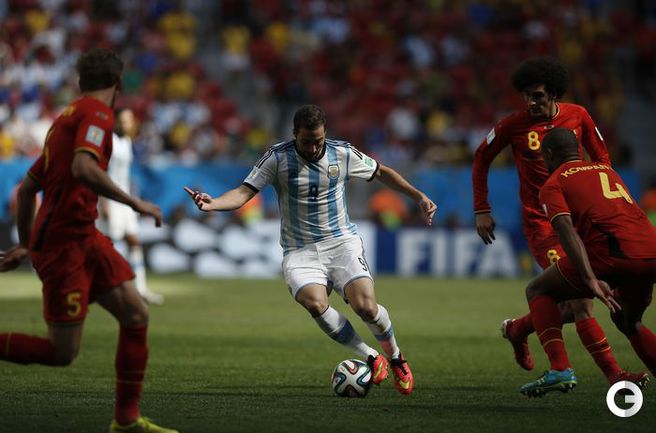 В матче 1/4 финала чемпионата мира-2014 сборная Аргентины взяла верх над Бельгией – 1:0. Единственный гол на 8-й минуте после атаки с участием Лионеля Месси и Анхеля Ди Марии провел Гонсало Игуаин. Фото AFP, REUTERS