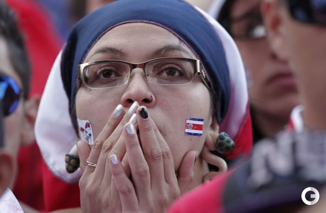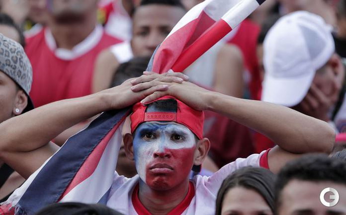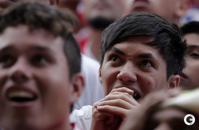 Болельщики сборной Коста-Рики и Голландии реагируют на события поединка 1/4 финала. Фото REUTERS