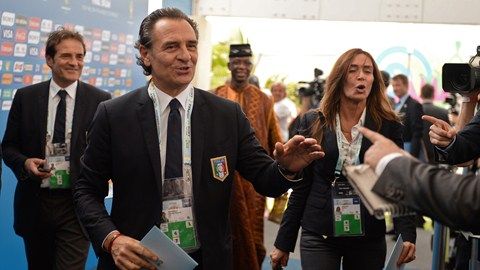 19.20 В Бразилии сейчас жарко - "плюс 28" градусов. Но не будем завидовать. Многие тренеры, приехавшие на жеребьевку, пытаются найти любой способ "спастись". А вот Чезаре Пранделли доволен и улыбчив.