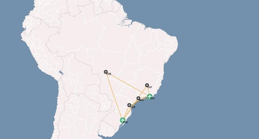 Гондурас: Порту-Алегри – Куритиба – 544,9 // Куритиба – Манаус – 2724,9 Всего – 3269,8
