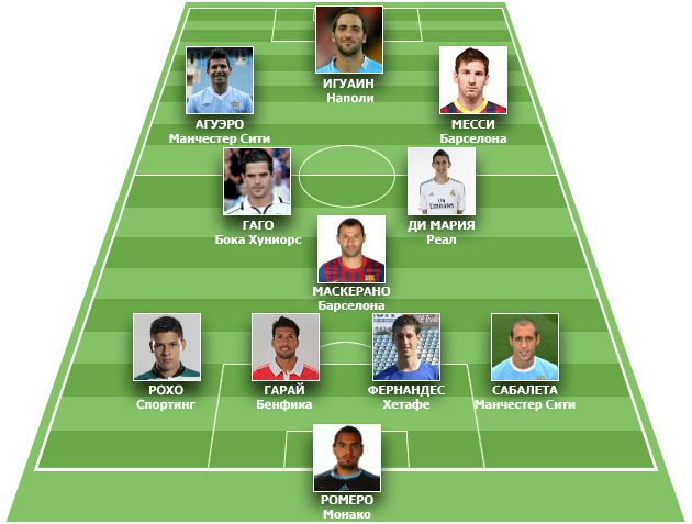 Главные звезды: Лионель МЕССИ ("Барселона"), Серхио АГУЭРО ("Манчестер Сити"), Анхель ДИ МАРИЯ ("Реал")