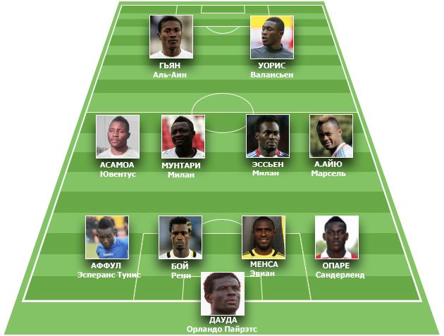 Главные звезды: Майкл ЭССЬЕН, Салли МУНТАРИ (оба – "Милан"), Квадво АСАМОА ("Ювентус"), Андре АЙЮ ("Марсель"), Асамоа ГЬЯН ("Аль-Аин", ОАЭ)