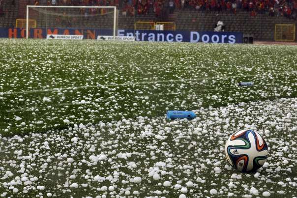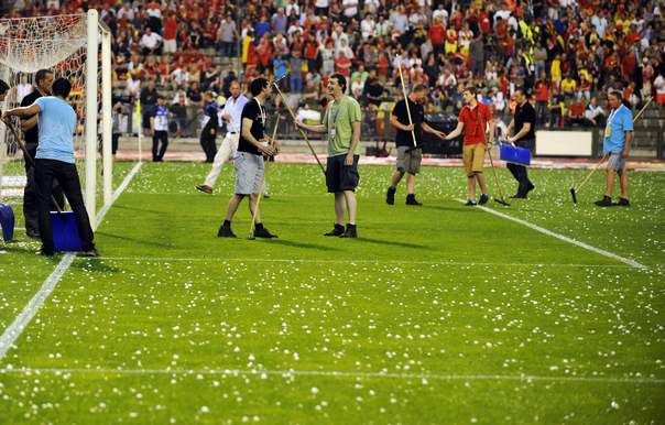 Непогода вмешалась в ход товарищеского матча соперника российской сборной по группе H чемпионата мира: игра на 24-й минуте была прервана из-за начавшегося в Брюсселе града.