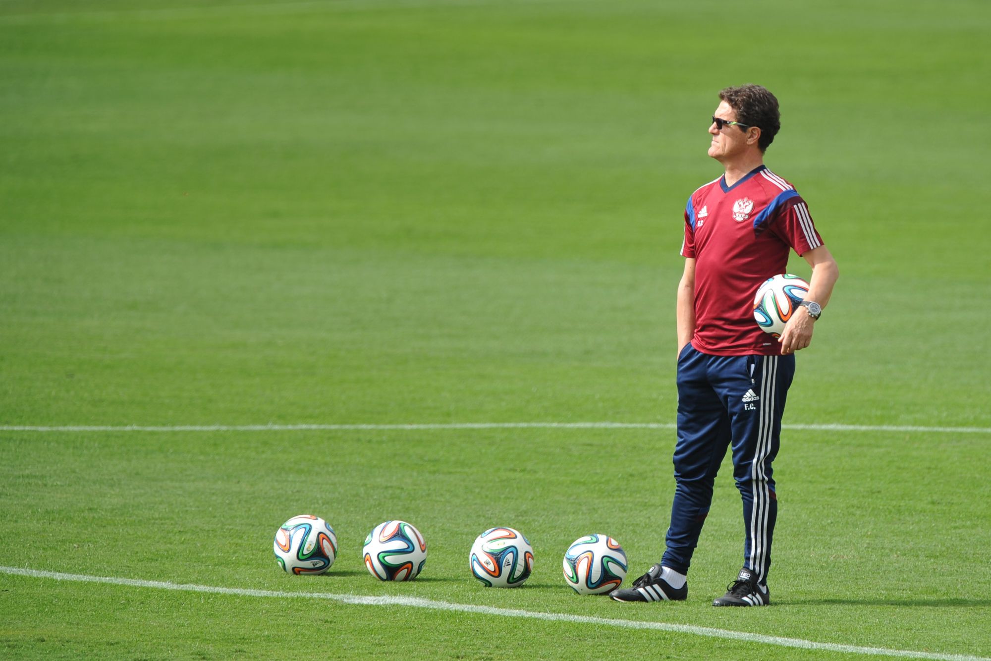 Не знаю, поняли ли все они, почему их российские коллеги обрадовались в момент выхода команды на поле, но пару-тройку удивленных глаз я отследить успел. А все дело в том, что из подтрибунного помещения появились все двадцать три фигуранта нашей заявки плюс Черышев. То есть фактически не тренировавшиеся вчера Глушаков, Дзагоев и Комбаров встали вместе с остальными в общий круг в центре поля – для прослушивания последних перед занятием наставлений Капелло.