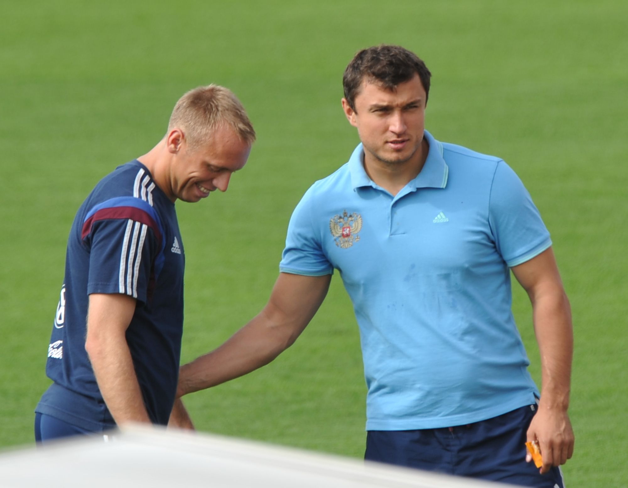 Кстати, то, что тренировка полномасштабна, можно было понять и по журналистам, ее посетившим, – если накануне за сборной России наблюдали практически только представители отечественной прессы, то сегодня наши коллеги были в ассортименте – и из Бельгии, и из Алжира, и, само собой, из Кореи, и из Бразилии.