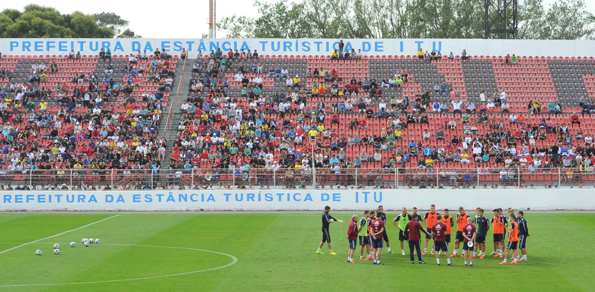 Открытая тренировка сборной России на глазах у тысяч бразильцев обернулась неожиданным, абсолютно сумасшедшим ажиотажем вокруг наших футболистов. Количество людей на трибунах стадиона "Новелли Жуниор" оказалось вполне сопоставимо с посещаемостью товарищеских встреч команды Капелло с Арменией в Краснодаре и со Словакией в Санкт-Петербурге.