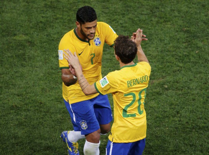БРАЗИЛИЯ: 12. Жулиу Сезар – 2. Даниэл Алвес, 3. Тиагу Силва (к), 4. Давид Луиз, 6. Марселу – 8. Паулинью (18. Эрнанес, 63), 11. Оскар, 17. Луиз Густаву – 7. Халк (20. Бернард, 68), 9. Фред, 10. Неймар (16. Рамирес, 88).