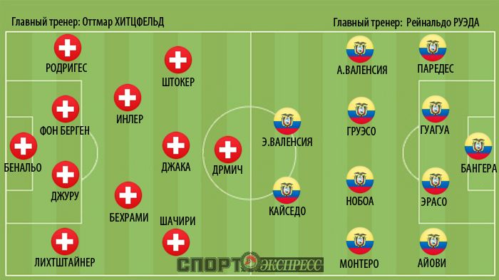 Четвертый игровой день ЧМ откроется встречей швейцарцев и эквадорцев