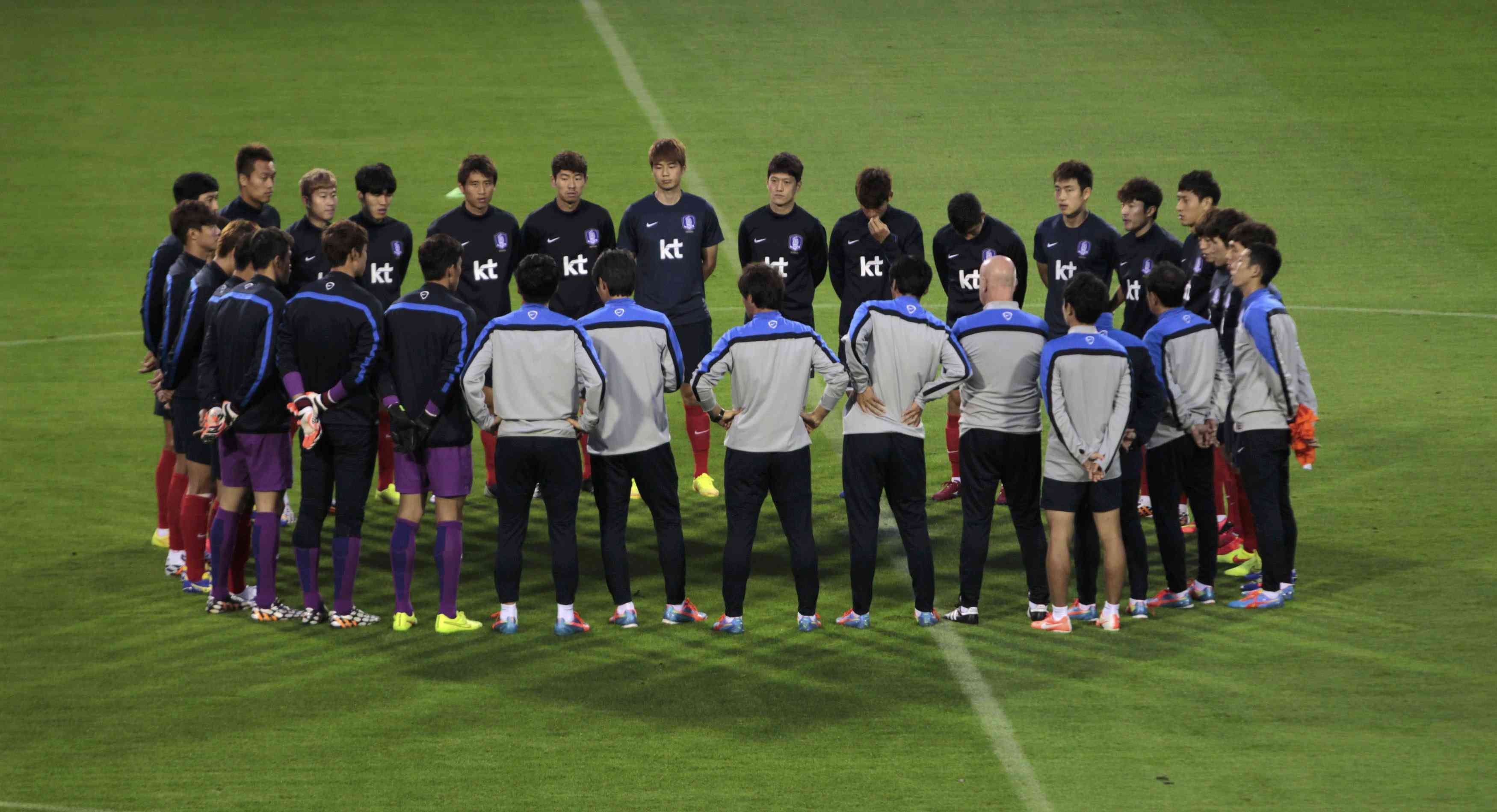 Сборная Кореи провела три закрытые тренировки подряд, при этом журналистам дважды позволяли смотреть лишь первые 15 минут занятий. Одно из них, в пятницу, едва не свели на нет мощный дождь и гроза.