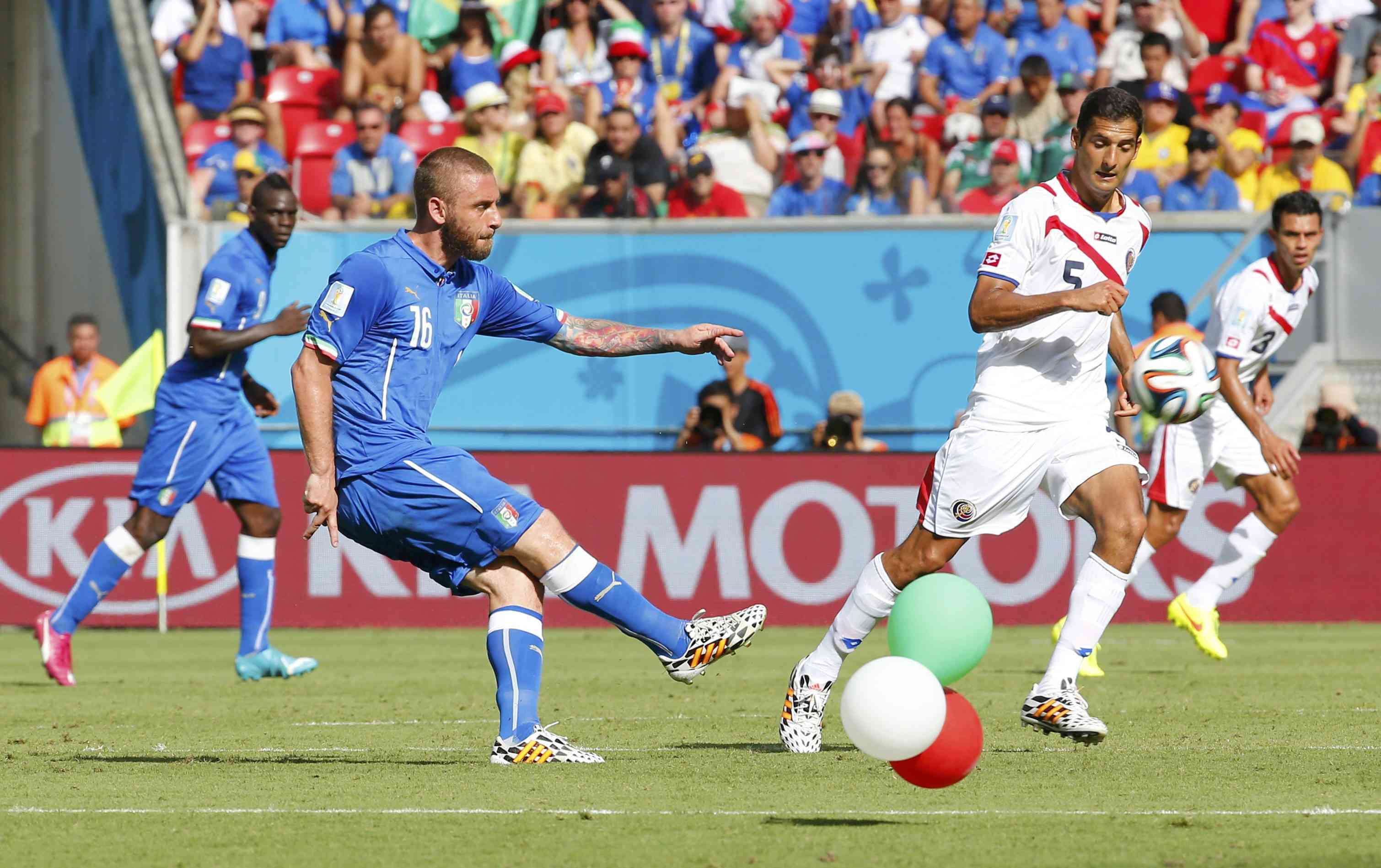 С Коста-Рикой же обострять у Италии не получалось категорически. Все, что могла предложить команда Пранделли – это забросы Пирло на Балотелли, который старался играть на грани офсайда. Один раз получилось, но форвард момент загубил. Все же остальные зоны костариканцы умело перекрыли, не давая сопернику ни сантиметра свободного пространства.