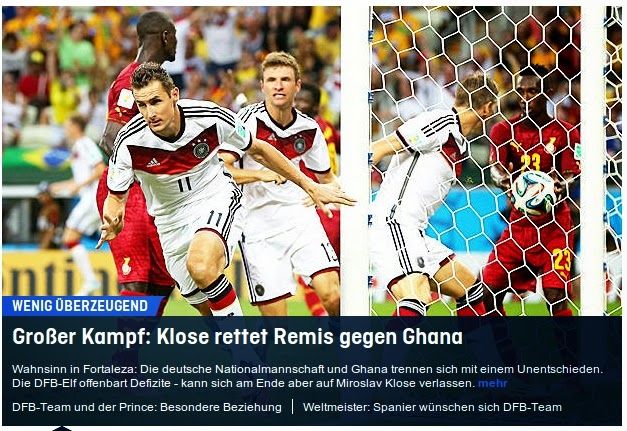 Немецкие СМИ не придали большого значения потере очков сборной Германии в игре против Ганы – куда важнее оказался гол Мирослава Клозе.