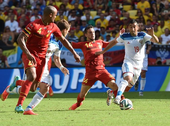 – У Бельгии быстрая и сильная группа атаки, – сказал правый полузащитник Александр Самедов, который выглядел выжатым как лимон. – Мы пошли вперед, потеряли мяч, и соперники воспользовались этим. Установка была – прежде всего не дать разбежаться их группе атаки. Я должен был не только проявлять активность впереди, но и помогать обороняться против Азара. На протяжении почти всего матча мы справлялись, но в концовке... Даже не знаю, какую оценку можно поставить России. Но волнения стало меньше, чем в первом матче.