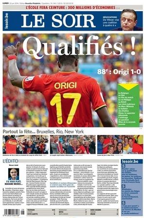 Ведущая бельгийская газета Le Soir не скрывает восторга по поводу спасительного гола 19-летнего Дивока Ориги на 88-й минуте, выведшего "Красных дьяволов" в 1/8 финала.