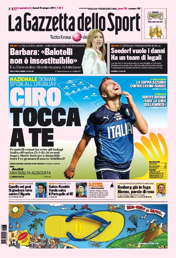 Итальянская La Gazetta dello Sport посвятила матчу Бельгия – Россия заголовок: "Капелло, теперь все стало сложнее" и подвергла критике тренера-соотечественника за выбор центрфорварда. Первая же полоса почти полностью посвящена родной сборной, хотя она играет лишь во вторник вечером, а крохотный портрет главного тренера сборной России скромно примостился в "подвале":