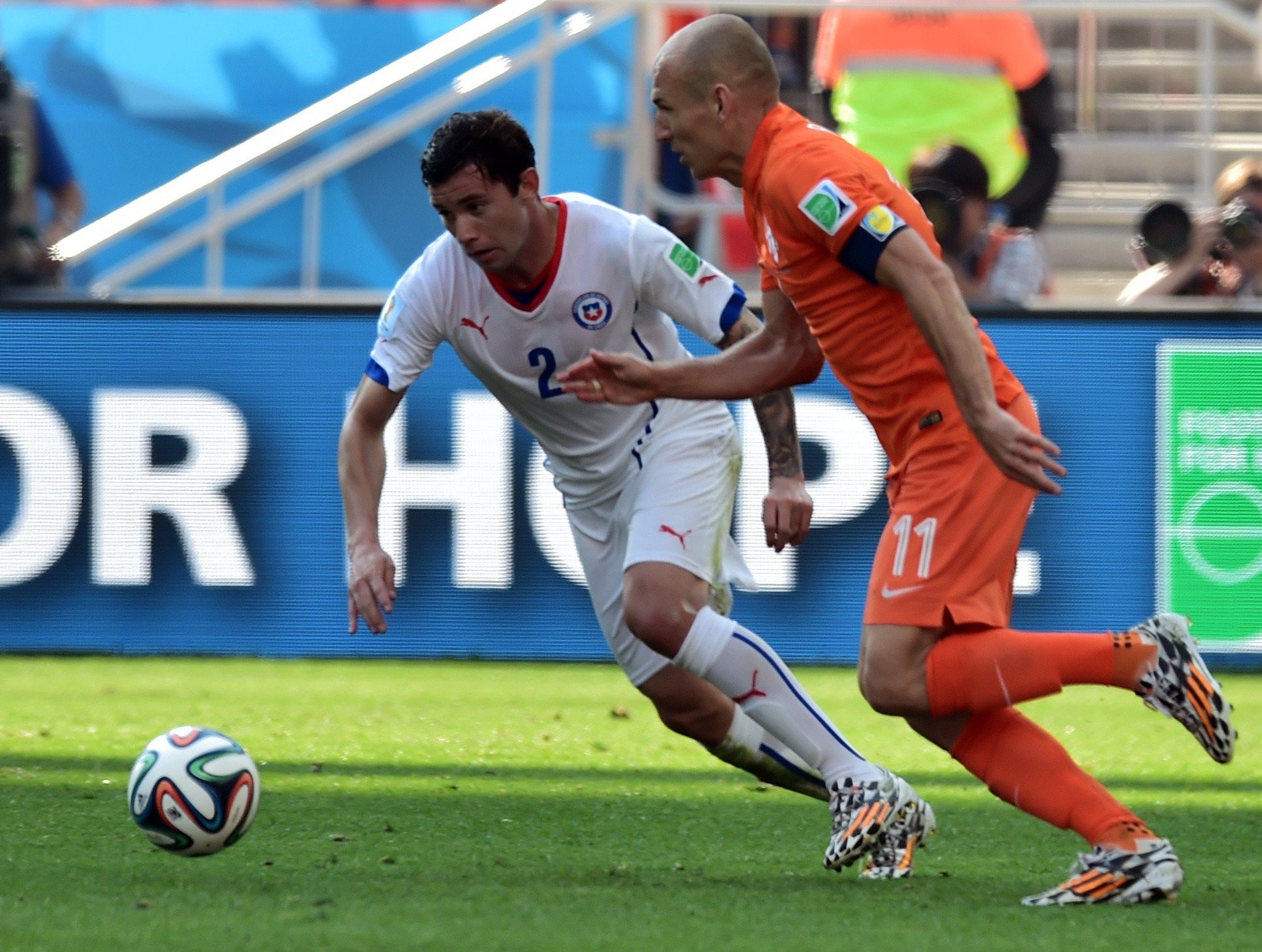 В первые полчаса на поле показывали повтор матча Россия – Корея. Только Фабио Капелло мог бы получить удовольствие от такого футбола. Об игре совершенно нечего было сказать. Возможно, сказывались потери. У Голландии дисквалифицирован летучий ван Перси и травмирован Мартинс Инди, у Чили паузу получил висящий на карточке и не совсем здоровый Видаль, хотя сам игрок "Ювентуса" утверждал, что рвется в бой.