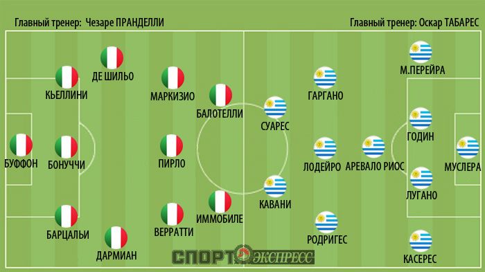 В решающих сражениях на главные роли выходят большие футболисты. Их достаточно с обеих сторон – непревзойденный мастер Андреа Пирло, талантливый разгильдяй Марио Балотелли, звезда "ПСЖ" Эдисон Кавани и, конечно же, феноменальный Луис Суарес. Восстановившийся в рекордные сроки после неприятной травмы колена и превратившийся в главную надежду уругвайского футбола.